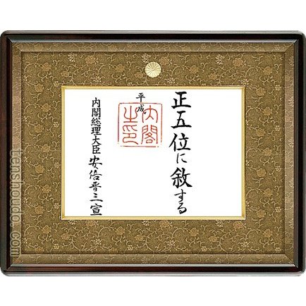 | 正一位 従一位 正二位 従二位 正三位 従三位 正四位 従四位 | ![]() 22.5cm×30.4cm | 【位記額単品】![]() ネットショップで 【位記額単品】の 商品一覧をご覧になる場合はこちらをクリック ![]() 【位記・叙勲同時収納】 ![]() ネットショップで 【位記・叙勲同時収納額】の 商品一覧をご覧になる場合はこちらをクリック ![]() |